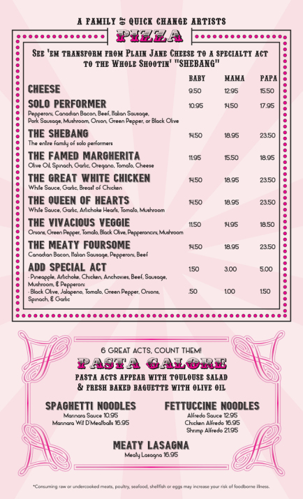 includes five unique dining rooms and a standing-room-only bar. Whether you are craving our signature prime rib, seafood, pasta, or the best pizza on Grand Lake, The Shebang will send you home