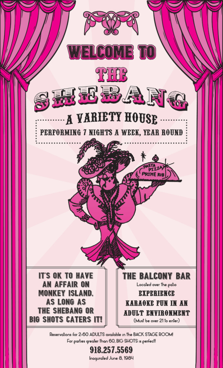 The Shebang is a fine dining and drinking establishment on Monkey island with a varied menu sure to satisfy the most sophisticated palate! Our fun and inviting atmosphere